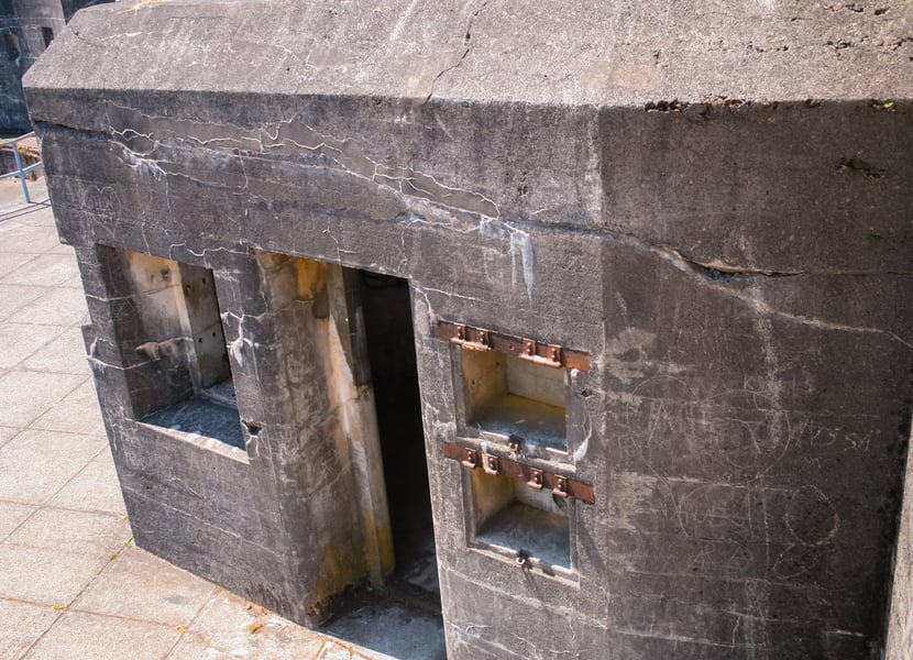 There are two levels to explore. The lower level includes old ammunition rooms, offices, guard rooms, and storage rooms. On the upper level, you can check out the old gun pit which housed two 10-inch disappearing guns. These guns would retract from view while soldiers reloaded, which provided cover from attacking enemies. Each gun required a team of 35 men to run!