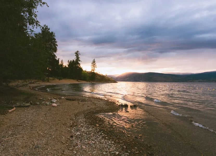 Bertram Creek Park skirts the pebbly shores of Okanagan Lake and is nestled along the base of Okanagan Mountain Provincial Park. The park is only 20 minutes from downtown Kelowna, but it’s off the beaten path and is usually very quiet.