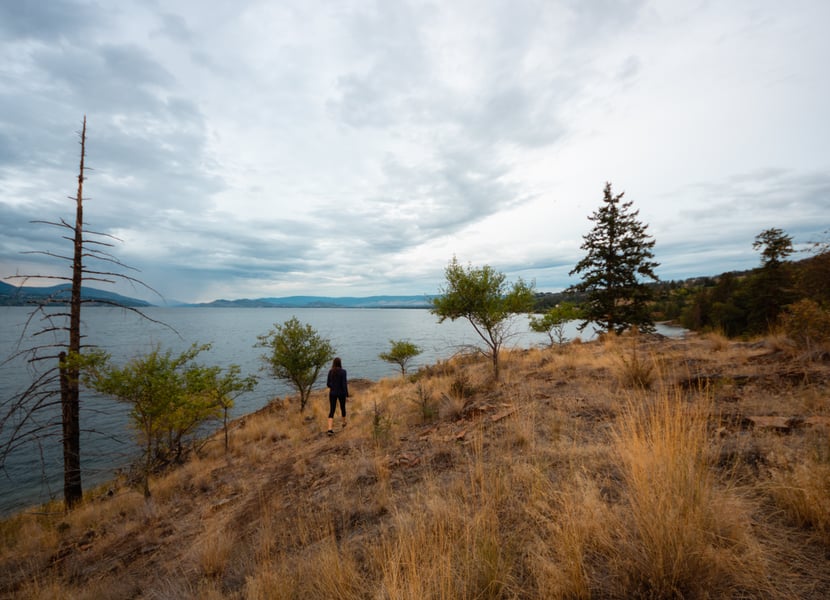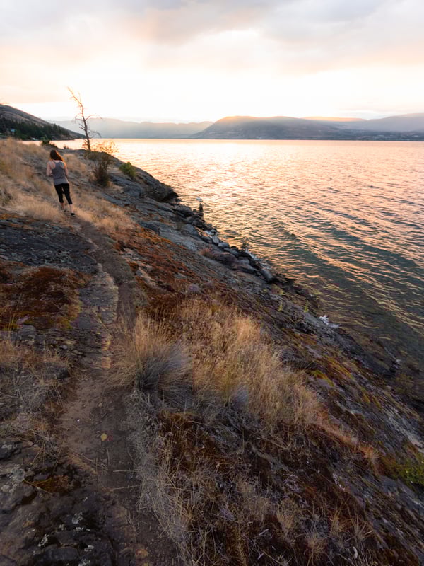 Bertram Creek Park is great for casual hiking! Trails crisscross the park and without too much effort you can enjoy beautiful views of Okanagan Lake. You can spot Kelowna and West Kelowna across the lake and even see Pincushion Mountain. The trails aren’t very difficult and you can easily hike the mild slopes wearing nothing more than a pair of walking sandals.