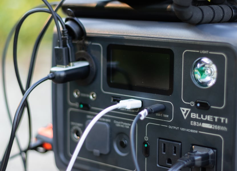 It’s easy to plug everything in and charge up all your devices on the road with the Bluetti EB3A. You should see some of the set-ups I’ve tested.
