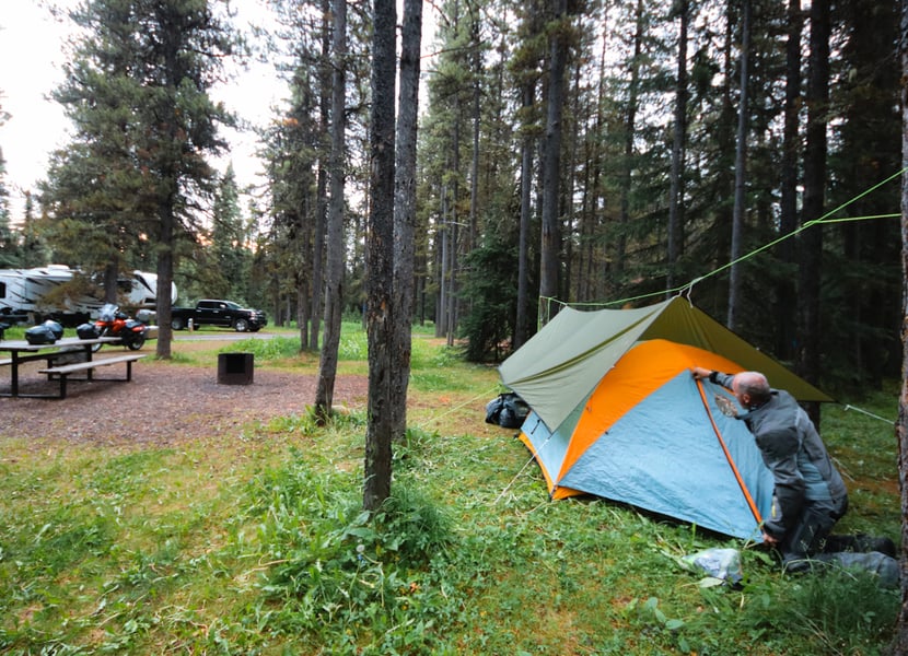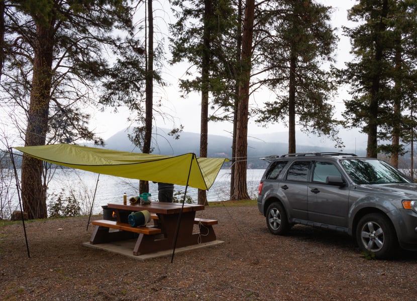 You can also use a pop-up canopy for an easy, treeless option to keep the rain off your campsite