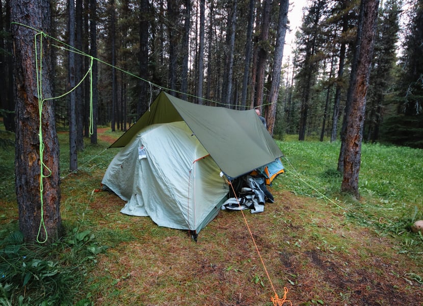 - Tarp the Bottom: Lay a tarp or tent footprint under your tent to keep out ground moisture, but tuck it completely under the tent to avoid water pooling.