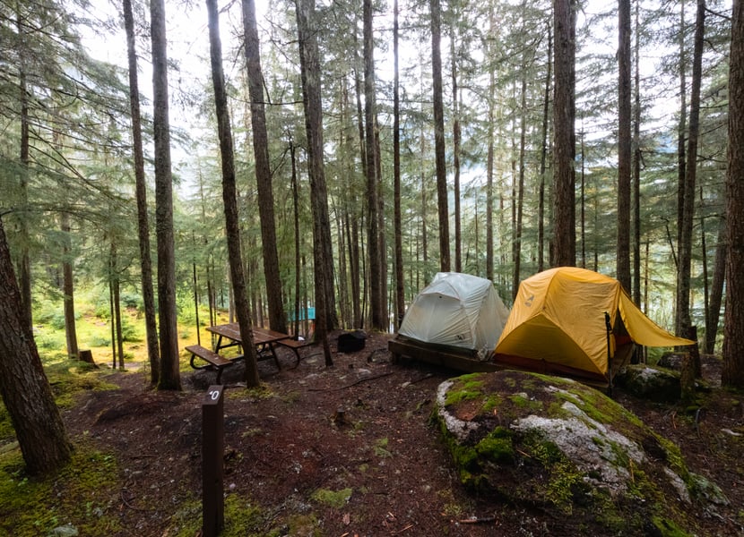 For a dry and cozy setup, pitch your tent on slightly sloped high ground to keep water from pooling. And if your reserved spot isn’t great, don’t hesitate to ask if you can switch because it’s better safe than soggy.