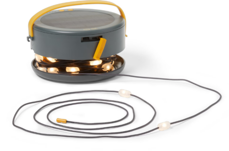 For a more whimsical touch, drape battery powered string lights around your sitting area; they offer enough light to brighten the space and create a magical atmosphere. There are also solar-powered fairy lights so you harness the sun during the day to light up your campsite after dark.