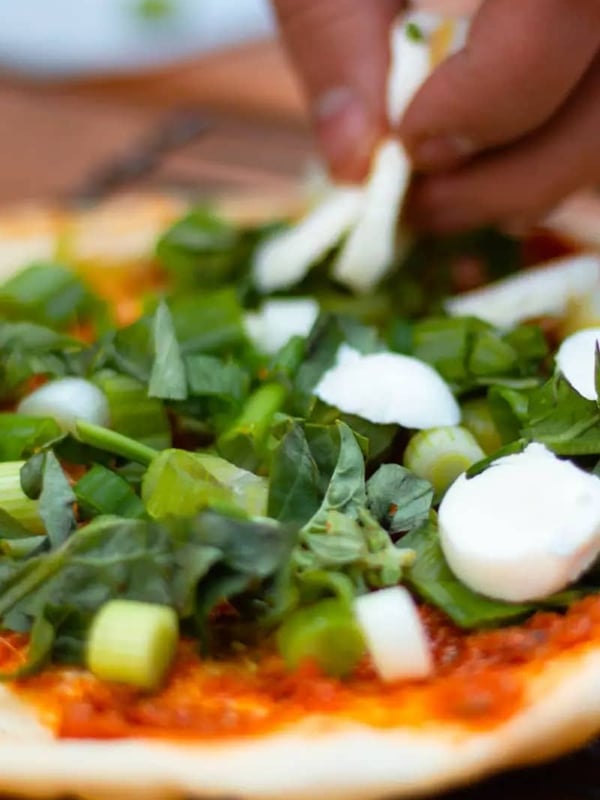 When your pizza’s ready, remove it from the campfire using oven mitts and cut it right away. Put it on your camping plate, drizzle with a balsamic reduction, and enjoy!