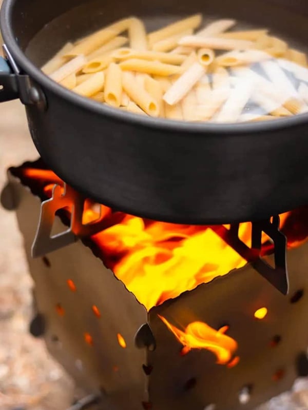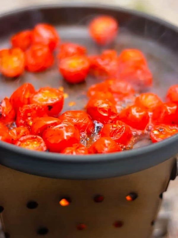 I usually have trouble keeping a boil with a campfire or wood-burning stove, so I often add the pasta from cold. I know it’s a little weird, but it works fine. After all, you’re camping. No one expects Michelin Star food while camping, at least that’s what I tell myself.