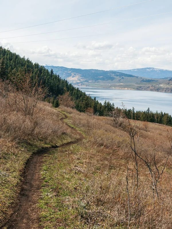 From the Kalamalka Park Main Parking Lot, head to the south end of the parking lot where there are two trails side-by-side. Take the left trail.