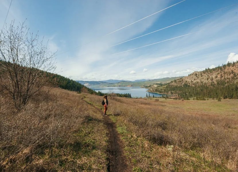 This trailhead offers easy access to the huge network of trails that run through Kalamalka Lake Provincial Park and it’s often quite busy. People often park on the side of the road because the parking lot isn’t large enough.