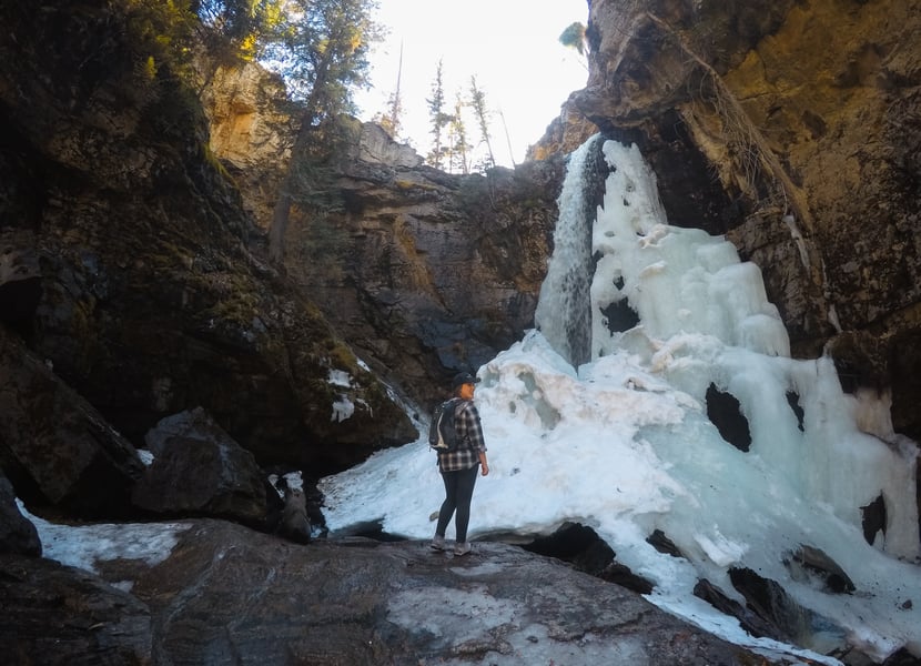 To reach the lower waterfall at Crawford Falls, take the trail that heads down into the canyon. It’s a steep, quick descent. The trail isn’t too difficult in the summer, but it can be a little awkward (especially in the beginning). However, in the winter it gets very icy and slippery. Be careful, go slow, and wear the proper gear.