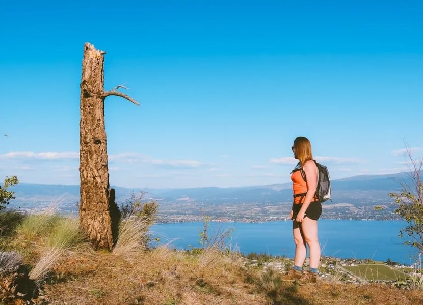 - Sun protection: Anytime you’re hiking in the Okanagan during the summer, it’s super important to protect yourself from the sun. Make sure to wear a hat, sunscreen, and sunglasses. You could even wear sun-rated clothing — which, surprisingly, isn’t super ugly.