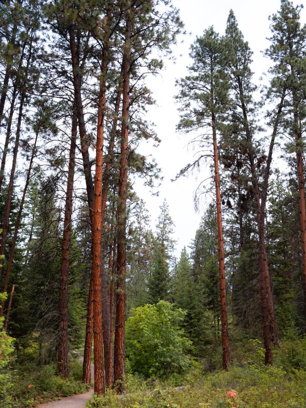 It’s also just really pretty. You’ll wander through a peaceful stretch of Ponderosa pine forest that feels miles away from the bustle, even though you’re still in town. It’s calm and full of wildlife; you’ll likely spot bald eagles soaring overhead, especially in the early morning or near the cliffs.