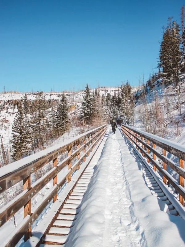 This stunning 12 km stretch of the Kettle Valley Railway just outside Kelowna features eighteen trestle bridges, two tunnels, and incredible views of the canyon below. It’s super scenic, flat, and perfect for hiking or biking.