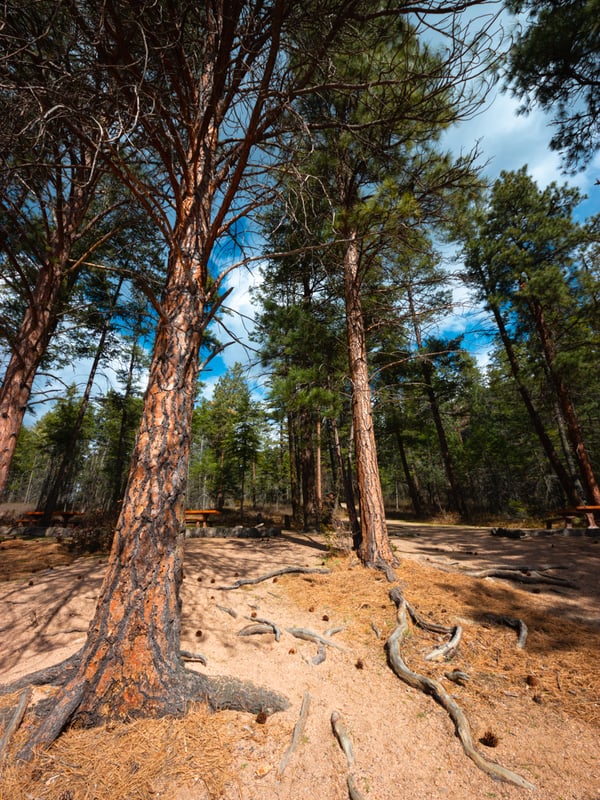 The campground is nestled in a mature Douglas fir and Ponderosa pine forest. The forest isn’t dense, but there’s lots of space between sites and plenty of undergrowth. Even though you can see your neighbours through the trees, they’re far away and you can enjoy plenty of privacy.