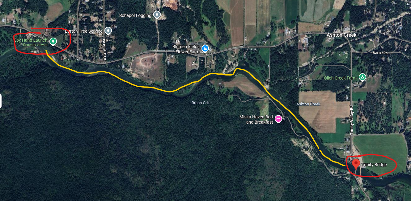 - Trinity Bridge to Eby Hand Launch: ~1 hour