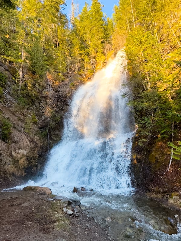 You can clearly see Ione Falls from the road, but don’t just drive by! Stop and check out this stunning waterfall while you’re in the Kootenays.