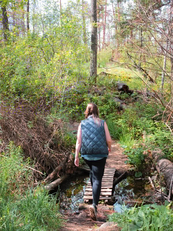 There are a few gems hidden away in the trees. Keep your eyes peeled for a fun little rock field, a marshy pond (bring bug spray!), and benches to relax at. The only way you’ll find ’em is by exploring, so get out there! We had a laugh by baa-ing at the goats at one of the nearby houses. You’re never too old to act like a kid! Pun intended.