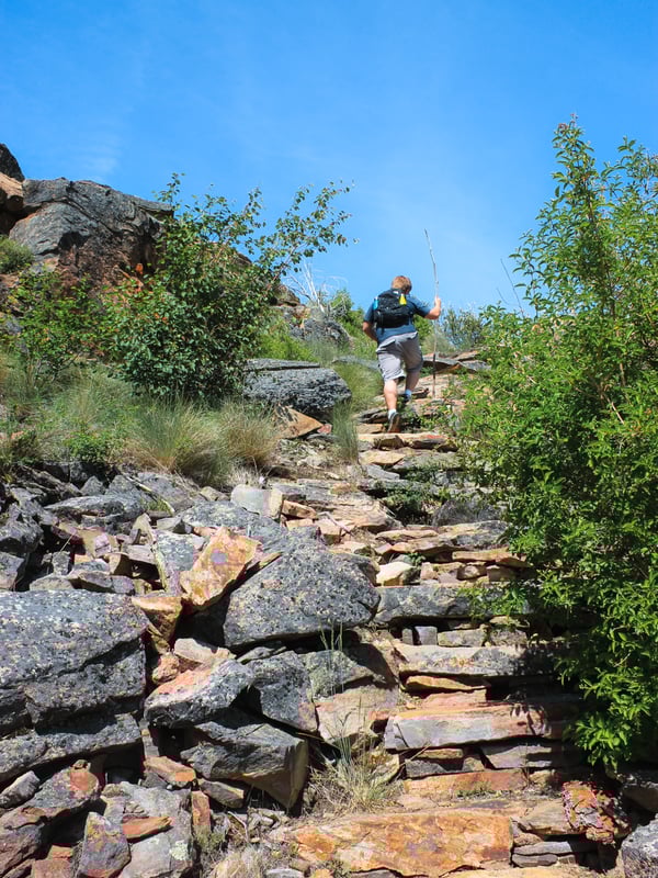 Johns Family is a very dry, exposed hike, especially in the summer, so you’ll need to be prepared for the heat and sun. Hydration packs will be your best friend. Sunscreen is also very important, as are sunglasses. You’ll also want hiking boots because the trails are rocky and the climb up the bluff is quite difficult.