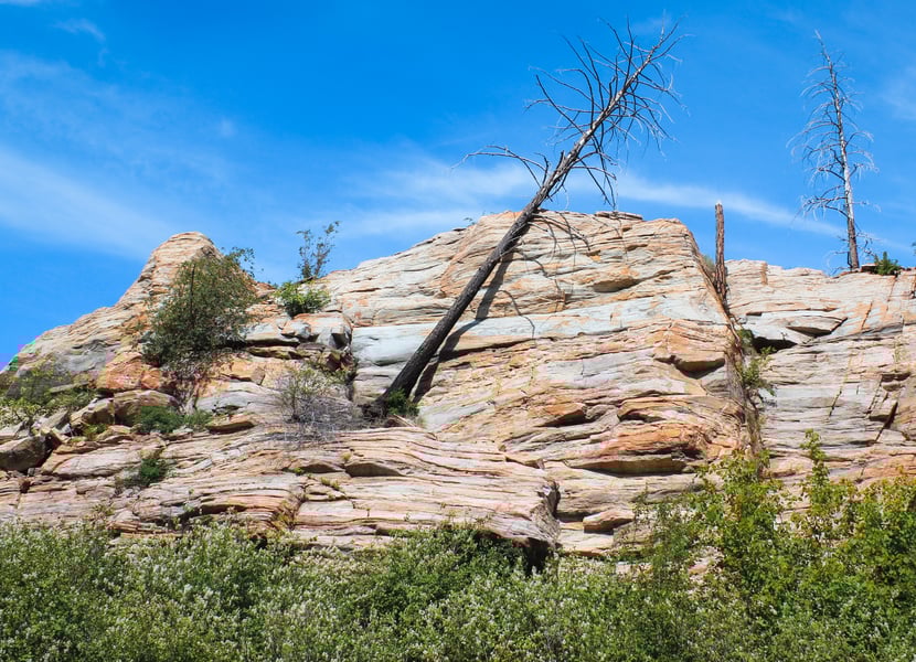 Even though the fire was over 15 years ago, nature takes a long time to repair itself. Because of the rocky land, which has almost no soil or water, the process is even slower. Trees have barely come back, but small shrubs have managed to grow and provide habitat for wildlife.