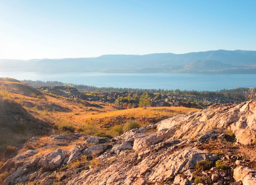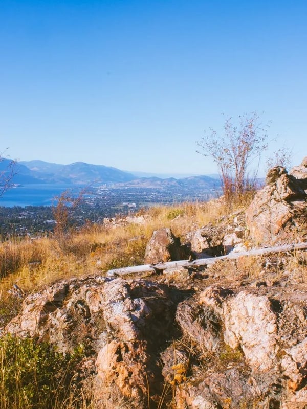 After a short scramble up a rocky, steep trail, you’ll reach the viewpoint and the sprawling view over Kelowna. Although the viewpoint is just above a sea of houses, it’s easy to pretend you’re farther out of town thanks to the rugged nature of the viewpoint.