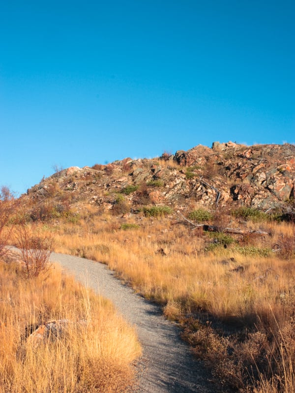 Once you leave behind the construction, the trail meanders along the bottom of a hill. I’ve spotted dear hangin’ out here a few times, so keep your eyes peeled! The main trail is a wide, gravel path that continues all the way to the second trailhead. There are some great views along the way.