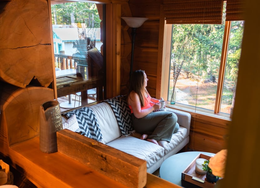 Check-in is at 3:00 pm and is self-serviced. You’ll receive a custom door code roughly 24 hours before your check-in, so ensure you’re somewhere that has either cell or internet access to receive it. We hung out in Nakusp the day before our check-in and had no trouble getting the code from Rick.