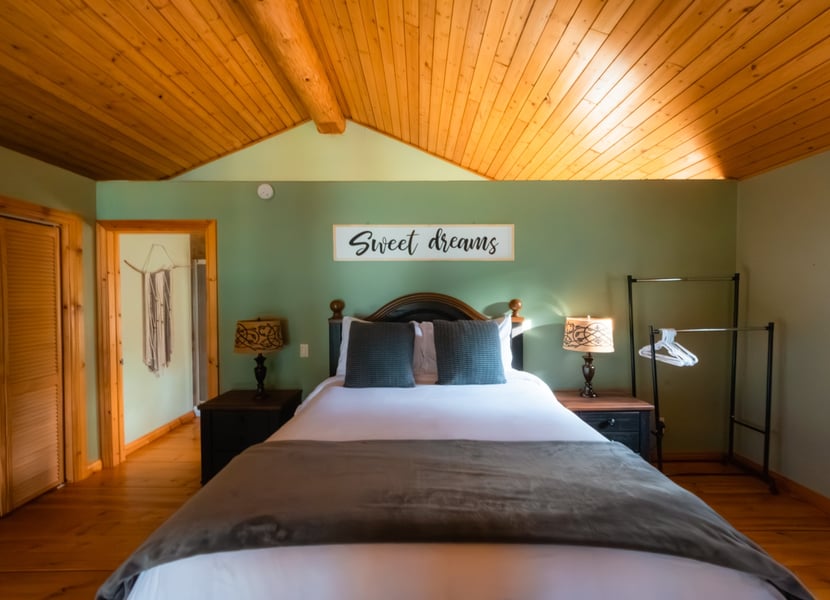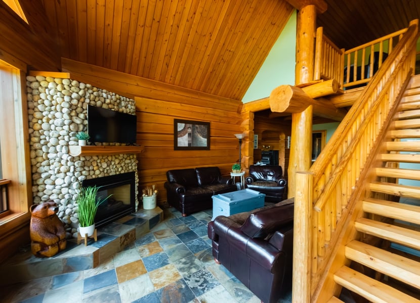 Don’t wait to book! This lakefront log cabin books out fast, especially in the summer! Luckily, you can also stay here in the winter for a cozy winter getaway.