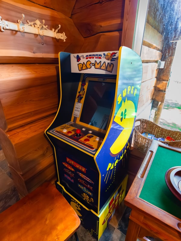 On the main floor, there’s a games room that has an arcade game plus casino-style games (to be honest, I don’t know what they are). At the base of the loft stairs, the table between the chairs is a chess board. In the basement, there’s a huge selection of board games. Outside, tucked away in a cabinet near the garage, are an assortment of lawn games.