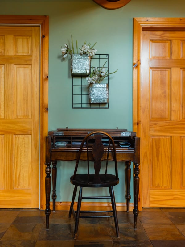 The main floor also has deck access where the hot tub, BBQ, and lots of outdoor seating are located. The deck has an absolutely stunning view over the grassy property down to the lake. We couldn’t help but eat our breakfast and dinner on the deck and soak in the hot tub a few times.