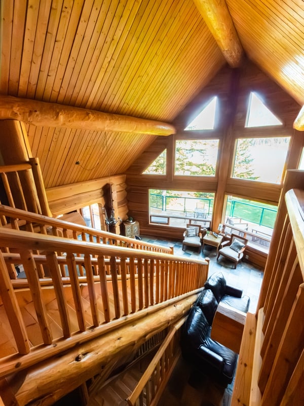 The Lakefront Log Home is a stunning handcrafted log home. Looking at the huge posts that adorn the beautiful loft area, it’s truly mesmerizing to imagine the thought and care that went into building it. Log cabins are something else.