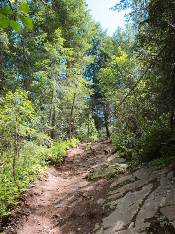 - Proper footwear: The right footwear is gonna make all the difference on this trail. There are some very rocky sections and hiking boots will be your saving grace.