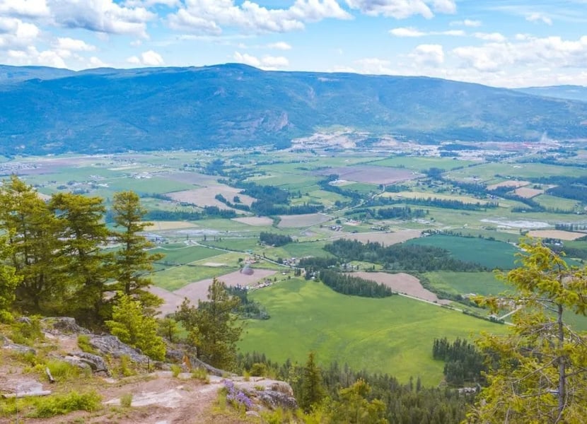 As you make your way to the Mt Rose Swanson trailhead, you’ll get a sneak peek into rural Okanagan life. The rolling hills, acres and acres of farmland, and tucked-away homes are as quintessential to the North Okanagan as multi-million dollar homes are to Kelowna.