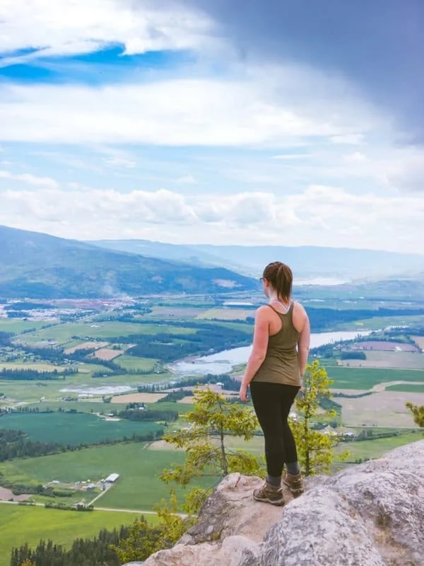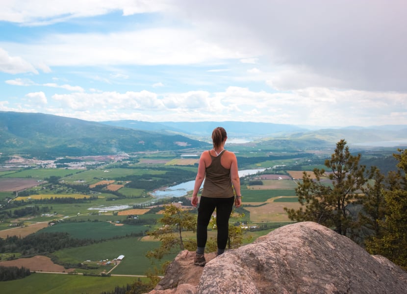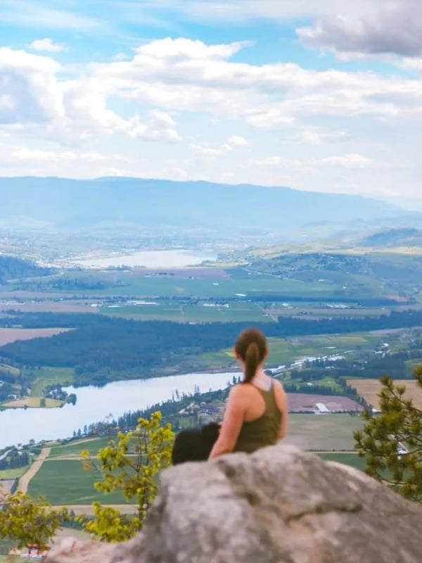 The main summit is breathtaking! From the rocky bluffs, you’ll get an unobstructed view south over Armstrong and Spallmucheen, all the way to the north end of Vernon. You can even see Okanagan Lake, Swan Lake, and Otter Lake! To your right, the forest seems to go on forever.