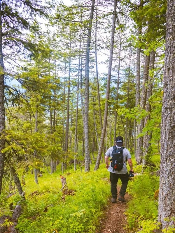 Once you’ve finished the downhill scramble, the remaining 2.5 km is a mix of slow and steady up and down. You’re back in the forest, but the trail here is a lot narrower than the beginning of your hike.