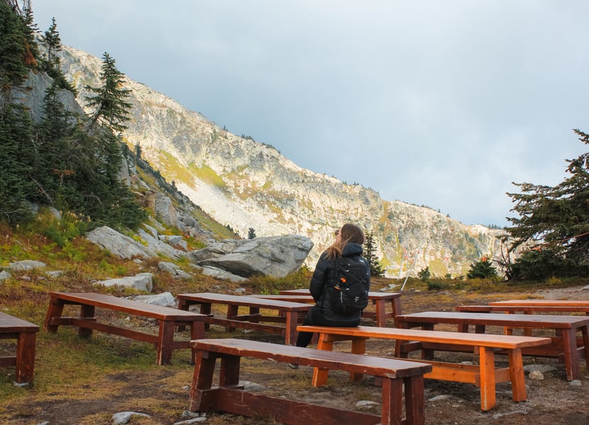 You’re more than welcome to bring your dog hiking on the Peak Trail, just remember that Big White Resort is entirely on-leash. You can even bring your dog on the chairlift! There’s no water on the Peak Trail, so make sure you pack water for your pup (this doggie water bowl is great!).