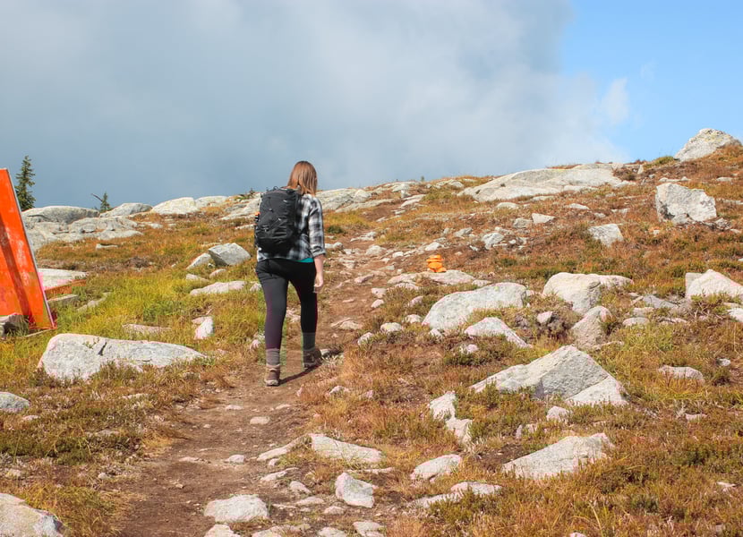 There are multiple hiking trails at Big White and they all meander across the alpine mountainside. Every single trail is great and, surprisingly, unique! But because the Peak Trail is so short, I highly recommend exploring more of the trails while you’re at Big White. Make sure to grab a map in the Village and follow the orange Inukshuk-like cairns along the trails.