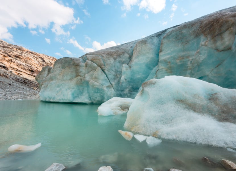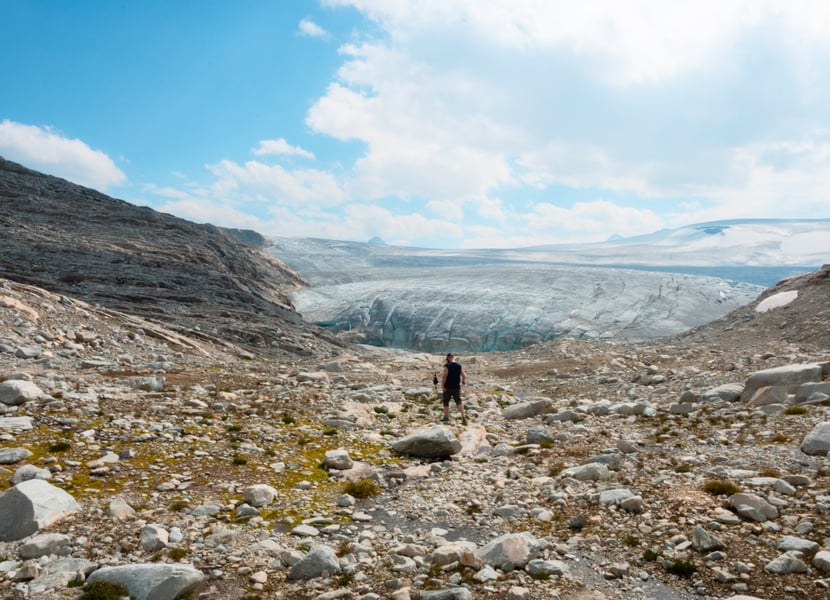 You’ll notice a fine glacier flour coats the ground as you approach the lake. It’s pure white, soft, and clings to everything — including you. The glacier flour is very similar to flour (hence the name) and is formed when slowly moving glaciers grind up rock and sediment. It’s easily transported in water and is the reason the glacier lake looks milky.