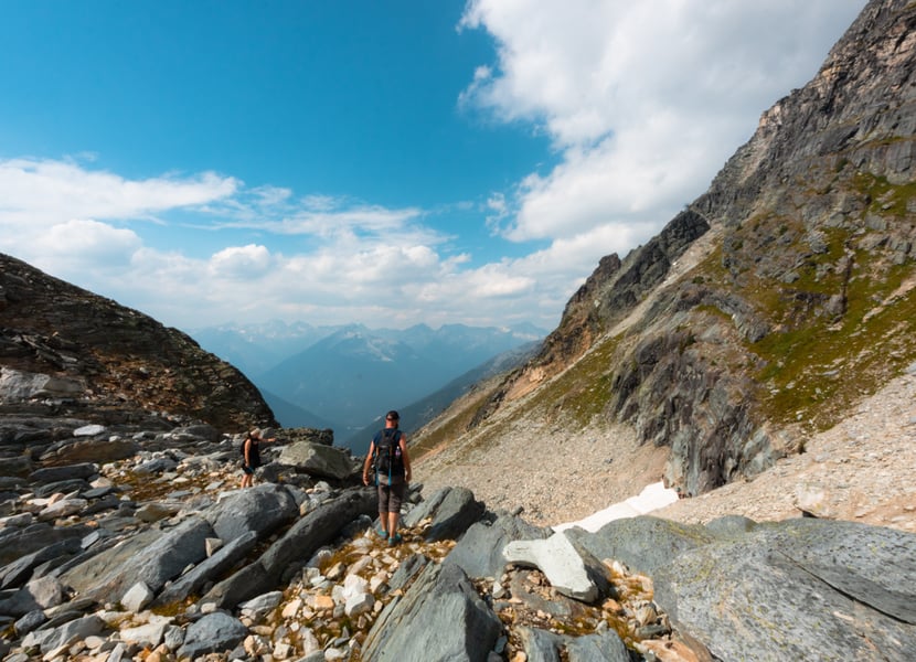 Even though you’ve already reached the summit of Perley Rock, the real treasure of this hike, the Illecillewaet Glacier, is a little further. Luckily, there’s no more uphill.