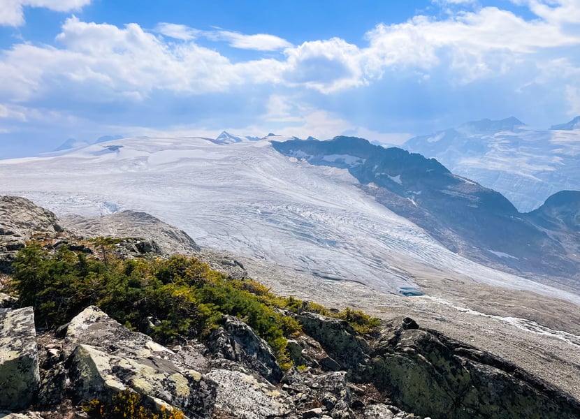 It’s really an unbelievable view and is 100% worth the sweat, lack of breath, and occasional choice word. Much of the view is rocky, exposed land where the Illecillewaet Glacier has retreated over the past 150 years.