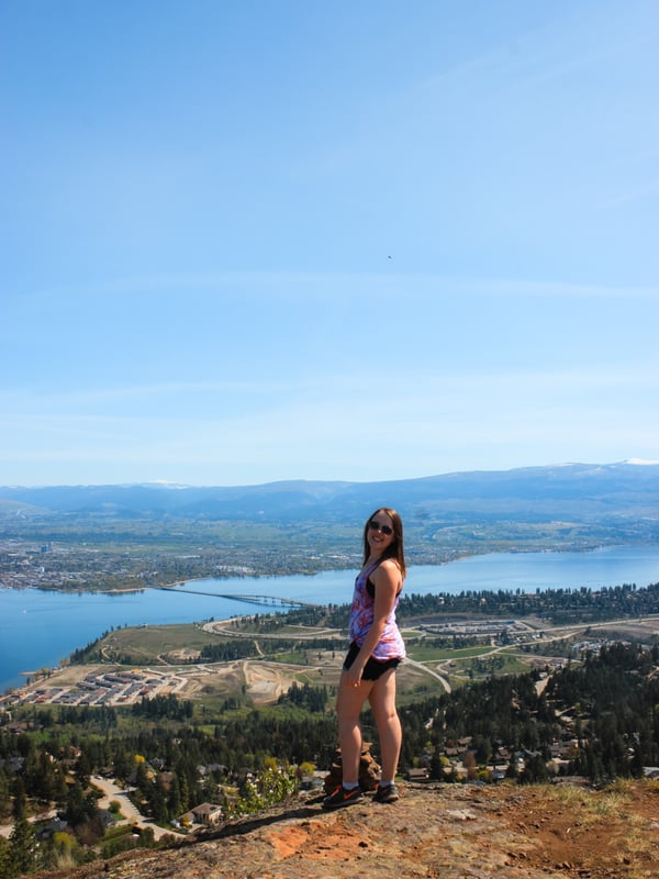 Starting from the service road, the trail heads all the way up to the top of the mountain and connects with the summit of the Bitterroot Trail, an official trail in the regional park. The views of Okanagan Lake and the reservoir are spectacular!