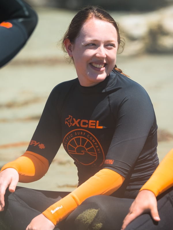 We relaxed at Cox Bay for an hour prior to our lesson, then met our instructors at the beach’s parking lot. Once our fellow students arrived, we struggled into our wetsuits and carried our surfboards down to the water.