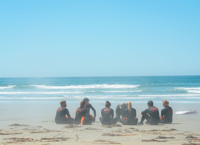 We spent about an hour on the beach learning surfing techniques like stance, paddling, and safety, as well as basic warm-ups such as stretching and jogging. We practiced the transition from paddling to standing, which is surprisingly difficult, even on the sand, and our instructors helped improve our techniques including hand and foot placement.