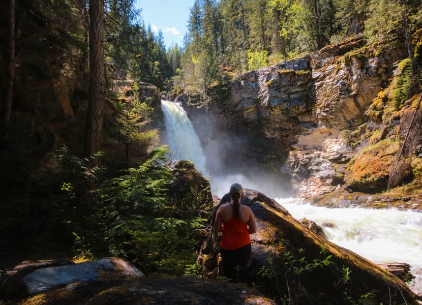 Sutherland Falls is located inside Blanket Creek Provincial Park which has a great campground! If you can’t get a campsite (or don’t want to camp), there are lots of great cabins in the Revelstoke area.