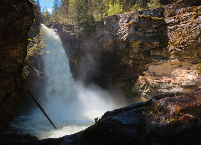 Sutherland Falls in Blanket Creek Provincial Park is one of the most spectacular and accessible waterfalls in the Revelstoke area. This waterfall hike is great for all skill levels and only takes about 5 minutes to reach.