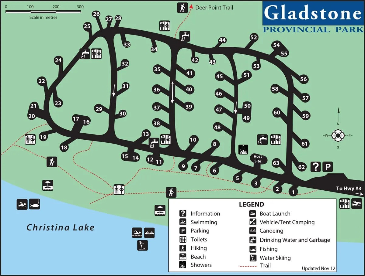 Texas Creek is the main vehicle-accessible campground within Gladstone Provincial Park. However, when reserving a campsite through BCParks.ca, Texas Creek is referred to as Gladstone Park.