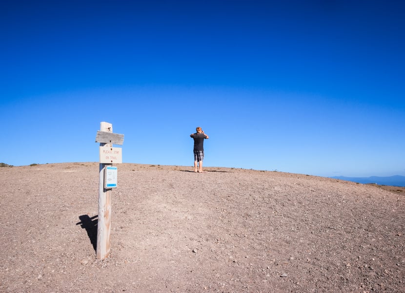 A short walk from the top of the ladder brings you to a wooden observation platform with information about Mt St Helens and Spirit Lake. For most people, this is as far along the Windy Ridge Trail as they’ll hike. All in all, it’s about 0.6 miles.